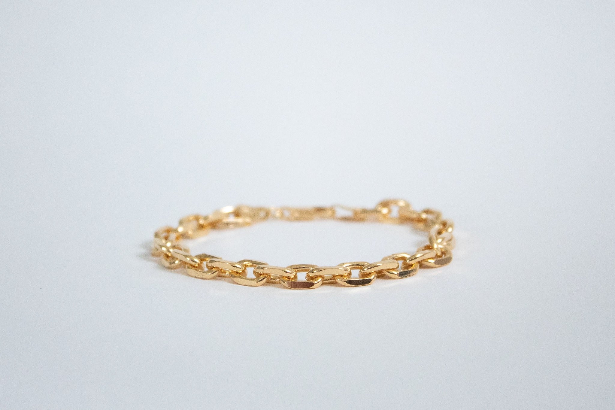 This bold gold-filled chain bracelet makes a statement in the most effortless way. Measuring 7 inches, it’s the perfect everyday piece eye catching on its own and stunning in a stack.