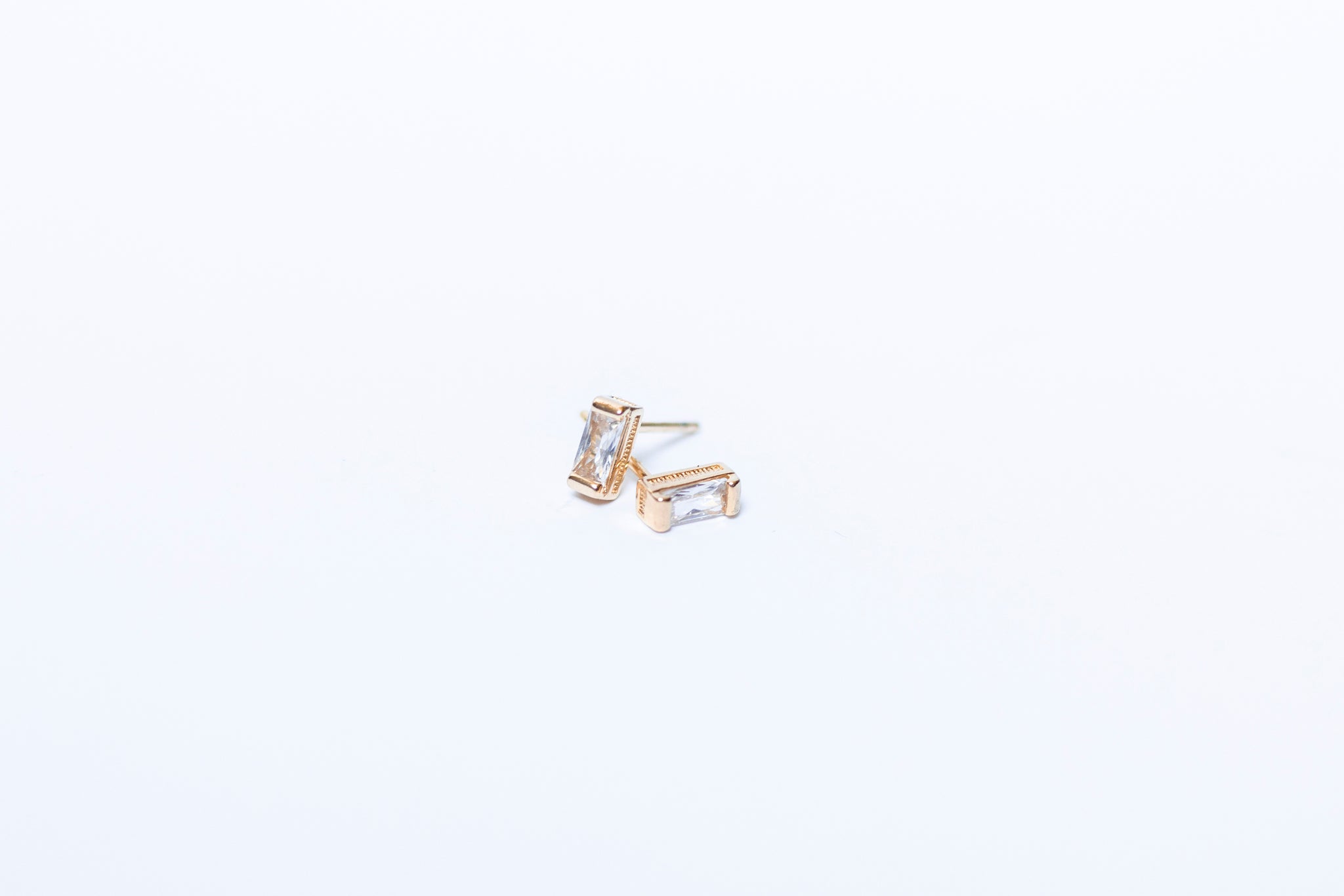 This CZ stud earring is sure to make a statement with its minimal design and unique shape. Beautiful on its own, but also wears well in a second piercing.